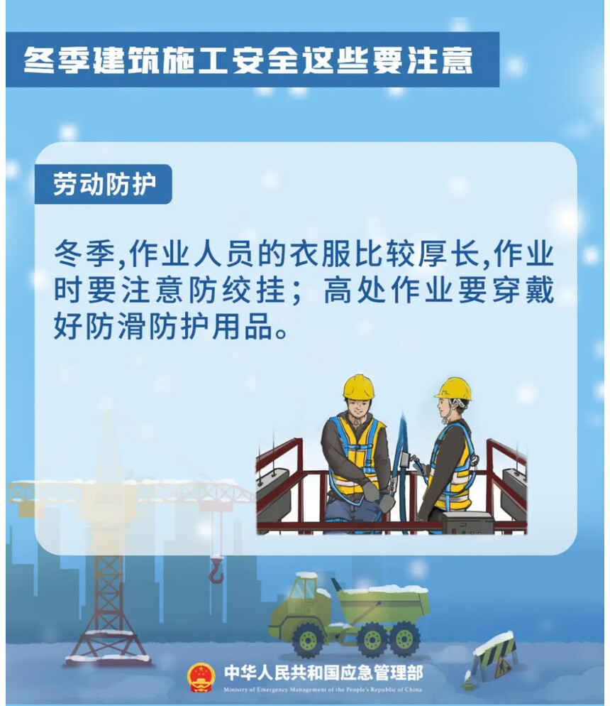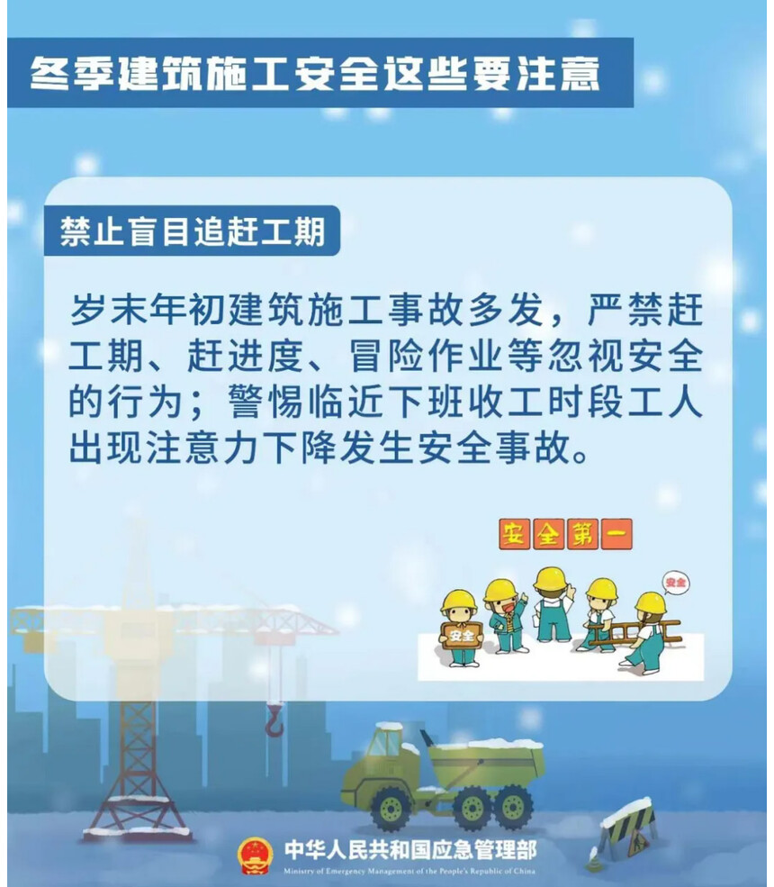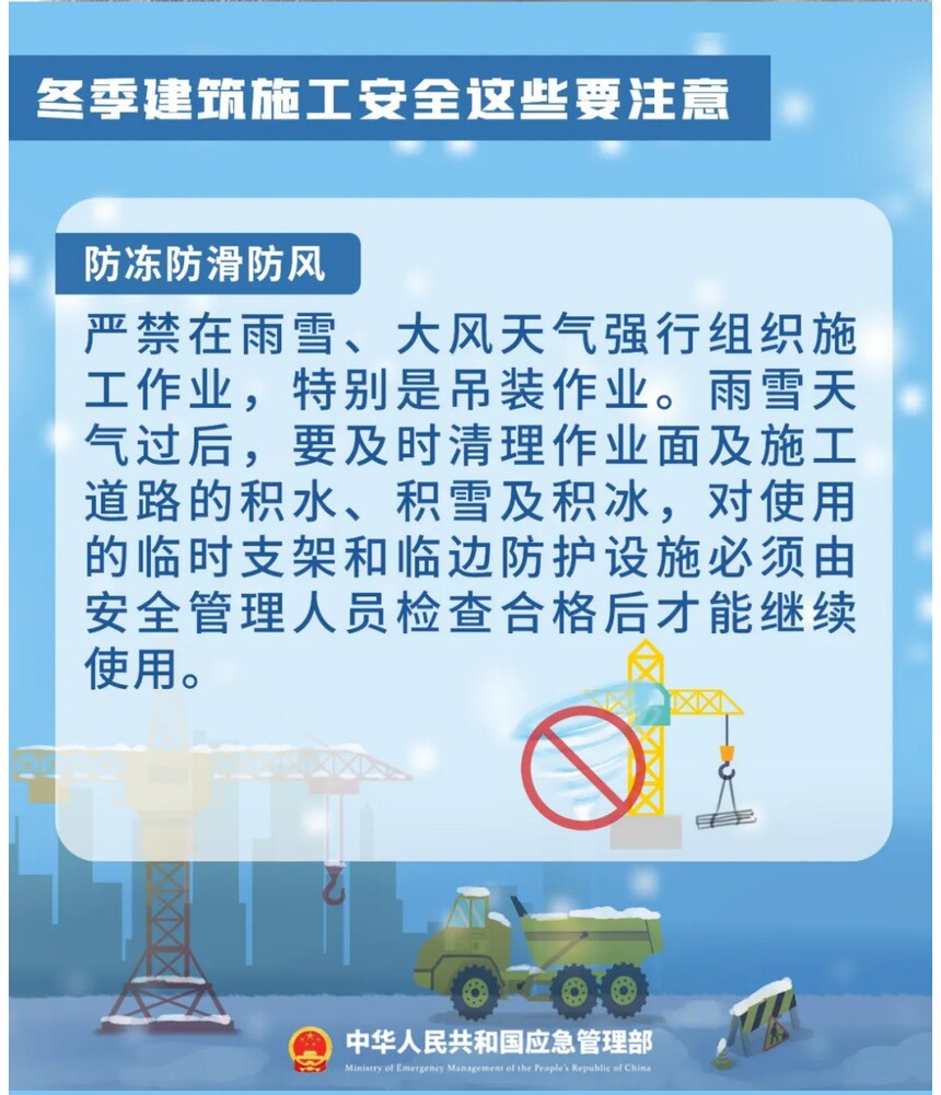 冬季施工安全生产注意事项,请查收!时间:2025-12-10 冬季,雨雪冰冻天气增多,对项目施工造成一定影响。如何确保项目施工平稳有序?下面这份建筑施工安全提示,请查收!